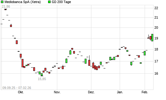 Mit dem Rücksetzer auf 18,49 EUR hat die Mediobanca-Aktie am 06.02.2026 die 200-Tage-Linie nach unten gekreuzt.
