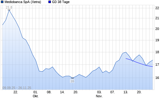 Mit dem Rücksetzer auf 16,68 EUR hat die Mediobanca-Aktie am 25.11.2025 die 38-Tage-Linie nach unten gekreuzt.