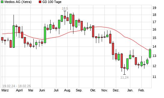 Mit dem Anstieg auf 13,84 EUR hat die Medios-Aktie am 17.02.2025 die 100-Tage-Linie nach oben gekreuzt.