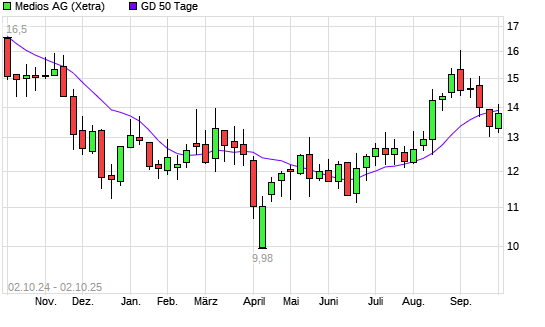 Mit dem Anstieg auf 13,94 EUR hat die Medios-Aktie am 01.10.2025 die 50-Tage-Linie nach oben gekreuzt.