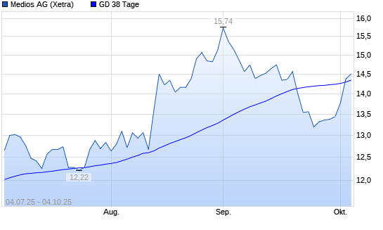 Mit dem Rücksetzer auf 14,24 EUR hat die Medios-Aktie am 03.10.2025 die 38-Tage-Linie nach unten gekreuzt.