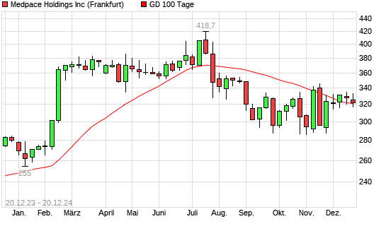 Mit dem Anstieg auf 322,50 EUR hat die Medpace Holdings-Aktie am 19.12.2024 die 100-Tage-Linie nach oben gekreuzt.