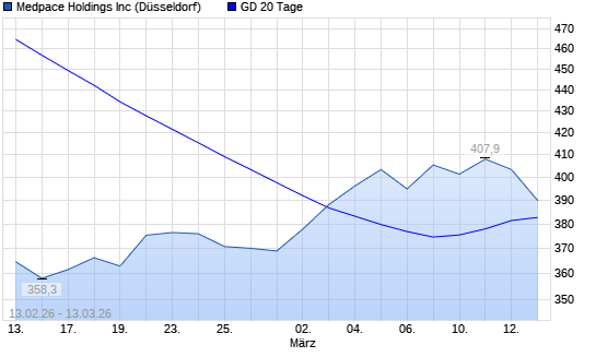 Mit dem Rücksetzer auf 384,90 EUR hat die Medpace Holdings-Aktie am 12.03.2026 die 20-Tage-Linie nach unten gekreuzt.