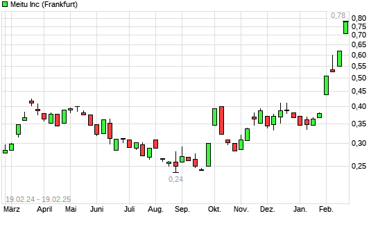 Mit dem Anstieg auf 0,78 EUR hat die Meitu-Aktie (ISIN KYG5966D1051) am 18.02.2025 ein neues 5-Jahres-Hoch erreicht und damit den Kurs vom 17.02.2025 eingestellt.