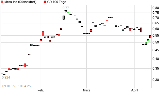 Mit dem Anstieg auf 0,52 EUR hat die Meitu-Aktie am 09.04.2025 die 100-Tage-Linie nach oben gekreuzt.