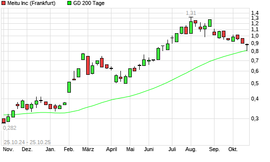 Mit dem Anstieg auf 0,88 EUR hat die Meitu-Aktie am 24.10.2025 die 200-Tage-Linie nach oben gekreuzt.
