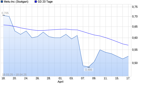 Mit dem Rücksetzer auf 0,54 EUR hat die Meitu-Aktie am 17.04.2025 die 20-Tage-Linie nach unten gekreuzt.Die Meitu-Aktie befindet sich seit dem 04.11.2024 im langfristigen Aufwärtstrend ...weiterlesen