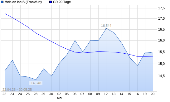 Mit dem Anstieg auf 15,50 EUR hat die Meituan-Aktie am 19.05.2025 die 20-Tage-Linie nach oben gekreuzt.