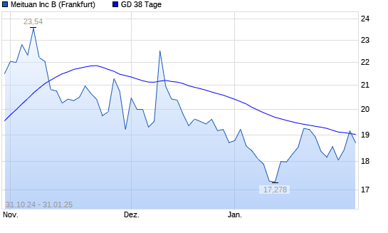 Mit dem Anstieg auf 19,15 EUR hat die Meituan-Aktie am 30.01.2025 die 38-Tage-Linie nach oben gekreuzt.