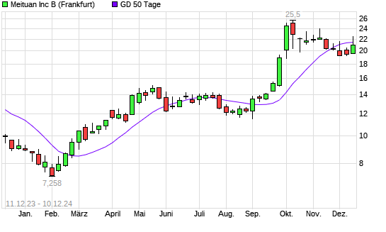 Mit dem Anstieg auf 22,50 EUR hat die Meituan-Aktie am 09.12.2024 die 50-Tage-Linie nach oben gekreuzt.
