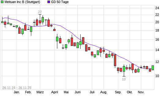 Mit dem Anstieg auf 11,50 EUR hat die Meituan-Aktie am 25.11.2025 die 50-Tage-Linie nach oben gekreuzt.