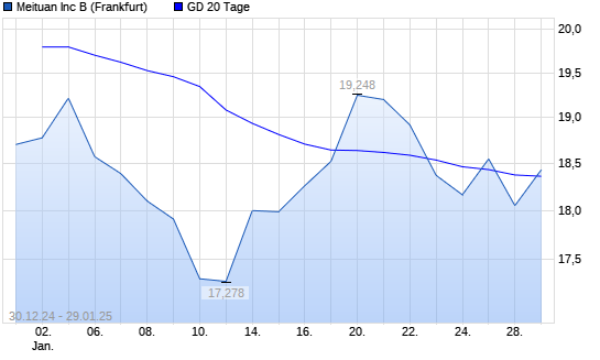 Mit dem Rücksetzer auf 18,05 EUR hat die Meituan-Aktie am 28.01.2025 die 20-Tage-Linie nach unten gekreuzt.