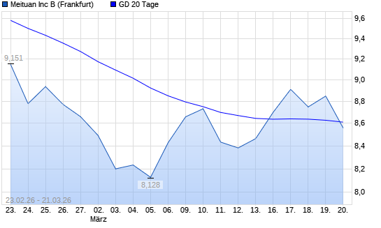 Mit dem Rücksetzer auf 8,56 EUR hat die Meituan-Aktie am 20.03.2026 die 20-Tage-Linie nach unten gekreuzt.
