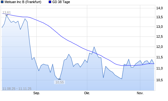 Mit dem Anstieg auf 11,41 EUR hat die Meituan-Aktie am 10.11.2025 die 38-Tage-Linie nach oben gekreuzt.Die Meituan-Aktie befindet sich seit dem 04.04.2025 im langfristigen Abwärtstrend und hat ...weiterlesen