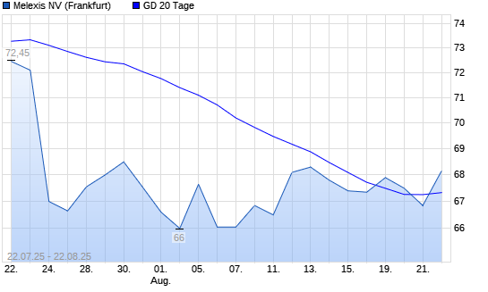 Mit dem Rücksetzer auf 66,85 EUR hat die Melexis-Aktie am 21.08.2025 die 20-Tage-Linie nach unten gekreuzt.