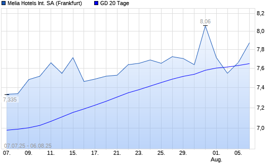 Mit dem Anstieg auf 7,66 EUR hat die Melia Hotels International-Aktie am 05.08.2025 die 20-Tage-Linie nach oben gekreuzt.