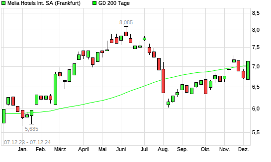 Mit dem Anstieg auf 7,14 EUR hat die Melia Hotels International-Aktie am 06.12.2024 die 200-Tage-Linie nach oben gekreuzt.