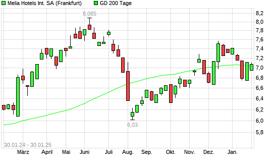 Mit dem Anstieg auf 7,10 EUR hat die Melia Hotels International-Aktie am 29.01.2025 die 200-Tage-Linie nach oben gekreuzt.