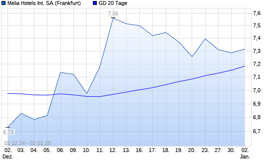 Mit dem Rücksetzer auf 7,28 EUR hat die Melia Hotels International-Aktie am 01.01.2025 die 20-Tage-Linie nach unten gekreuzt.
