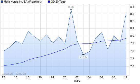 Mit dem Rücksetzer auf 7,91 EUR hat die Melia Hotels International-Aktie am 11.03.2026 die 20-Tage-Linie nach unten gekreuzt.