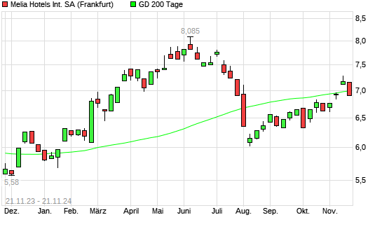 Mit dem Rücksetzer auf 6,99 EUR hat die Melia Hotels International-Aktie am 20.11.2024 die 200-Tage-Linie nach unten gekreuzt.