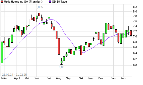 Mit dem Rücksetzer auf 7,14 EUR hat die Melia Hotels International-Aktie am 20.02.2025 die 50-Tage-Linie nach unten gekreuzt.