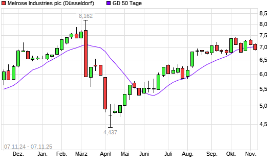 Mit dem Anstieg auf 7,09 EUR hat die Melrose Industries-Aktie am 06.11.2025 die 50-Tage-Linie nach oben gekreuzt.