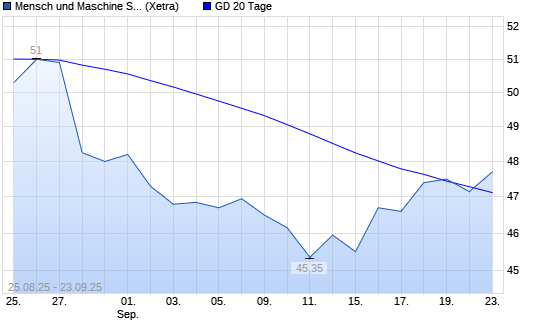Mit dem Rücksetzer auf 47,05 EUR hat die Mensch und Maschine-Aktie am 22.09.2025 die 20-Tage-Linie nach unten gekreuzt.