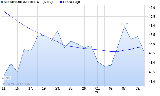 Mit dem Rücksetzer auf 46,60 EUR hat die Mensch und Maschine-Aktie am 10.10.2025 die 20-Tage-Linie nach unten gekreuzt.