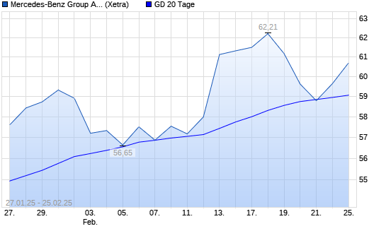 Mit dem Anstieg auf 59,50 EUR hat die Mercedes-Benz Group (ex Daimler)-Aktie am 24.02.2025 die 20-Tage-Linie nach oben gekreuzt.