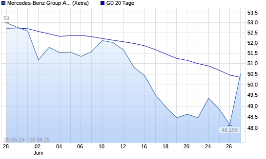 Mit dem Anstieg auf 50,48 EUR hat die Mercedes-Benz Group (ex Daimler)-Aktie am 27.06.2025 die 20-Tage-Linie nach oben gekreuzt.