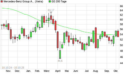 Mit dem Anstieg auf 53,90 EUR hat die Mercedes-Benz Group (ex Daimler)-Aktie am 09.10.2025 die 200-Tage-Linie nach oben gekreuzt.