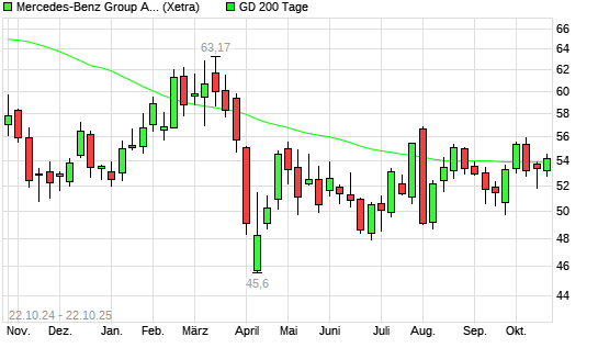 Mit dem Anstieg auf 53,84 EUR hat die Mercedes-Benz Group (ex Daimler)-Aktie am 21.10.2025 die 200-Tage-Linie nach oben gekreuzt.