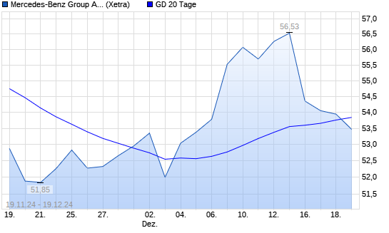 Mit dem Rücksetzer auf 53,49 EUR hat die Mercedes-Benz Group (ex Daimler)-Aktie am 18.12.2024 die 20-Tage-Linie nach unten gekreuzt.