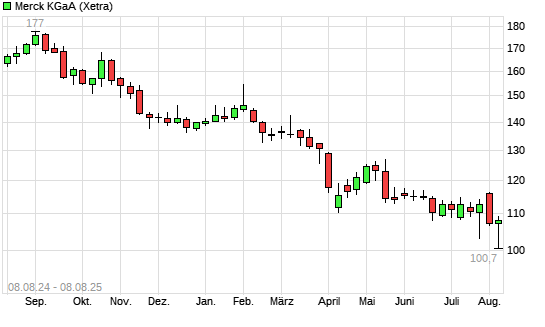 Mit dem Rücksetzer auf 103,85 EUR hat die Merck-Aktie (ISIN DE0006599905) am 07.08.2025 ein neues 5-Jahres-Tief erreicht und damit den Kurs vom 06.08.2025 eingestellt.
