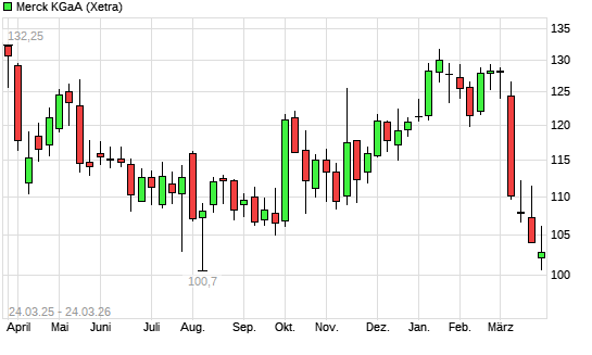Mit dem Rücksetzer auf 102,25 EUR hat die Merck-Aktie (ISIN DE0006599905) am 23.03.2026 ein neues 5-Jahres-Tief erreicht und damit den Kurs vom 20.03.2026 eingestellt.