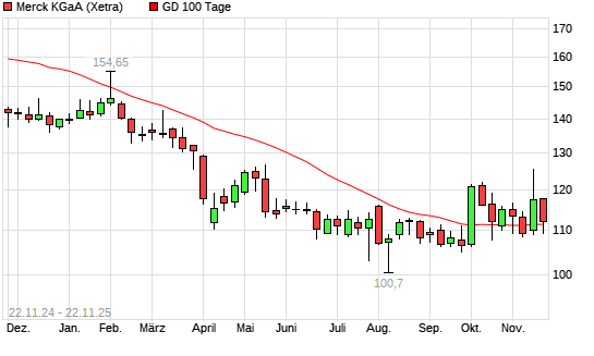 Mit dem Anstieg auf 112,55 EUR hat die Merck-Aktie am 21.11.2025 die 100-Tage-Linie nach oben gekreuzt.
