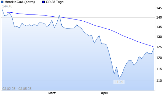Mit dem Anstieg auf 125,55 EUR hat die Merck-Aktie am 02.05.2025 die 38-Tage-Linie nach oben gekreuzt.