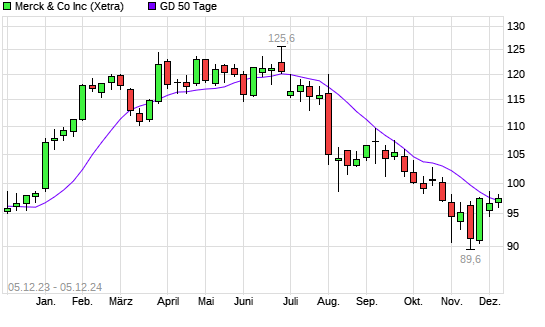 Mit dem Anstieg auf 98,10 EUR hat die Merck & Co-Aktie am 04.12.2024 die 50-Tage-Linie nach oben gekreuzt.