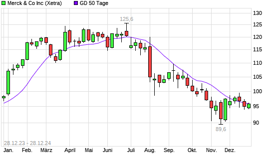 Mit dem Anstieg auf 95,70 EUR hat die Merck & Co-Aktie am 27.12.2024 die 50-Tage-Linie nach oben gekreuzt.