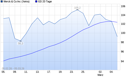 Mit dem Rücksetzer auf 102,40 EUR hat die Merck & Co-Aktie am 04.03.2026 die 20-Tage-Linie nach unten gekreuzt.