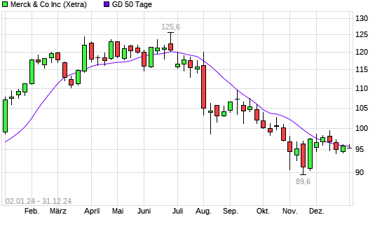 Mit dem Rücksetzer auf 95,40 EUR hat die Merck & Co-Aktie am 30.12.2024 die 50-Tage-Linie nach unten gekreuzt.