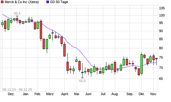 Mit dem Rücksetzer auf 72,30 EUR hat die Merck & Co-Aktie am 05.11.2025 die 50-Tage-Linie nach unten gekreuzt.