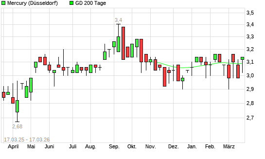Mit dem Anstieg auf 3,14 EUR hat die Mercury-Aktie am 16.03.2026 die 200-Tage-Linie nach oben gekreuzt.