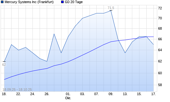 Mit dem Rücksetzer auf 65,00 EUR hat die Mercury Systems-Aktie am 17.10.2025 die 20-Tage-Linie nach unten gekreuzt.