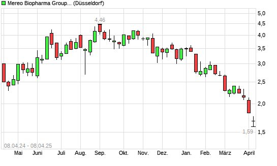 Mit dem Rücksetzer auf 1,66 EUR hat die Mereo Biopharma-Aktie (ISIN US5894921072) am 07.04.2025 ein neues 12-Monats-Tief erreicht und damit den Kurs vom 04.04.2025 eingestellt.