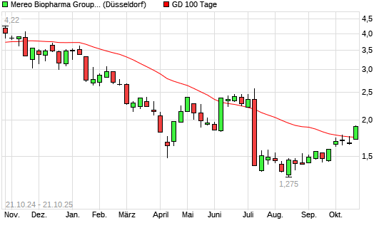 Mit dem Anstieg auf 1,75 EUR hat die Mereo Biopharma-Aktie am 20.10.2025 die 100-Tage-Linie nach oben gekreuzt.