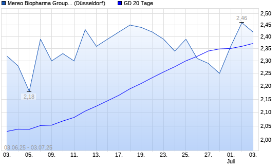 Mit dem Anstieg auf 2,35 EUR hat die Mereo Biopharma-Aktie am 02.07.2025 die 20-Tage-Linie nach oben gekreuzt.