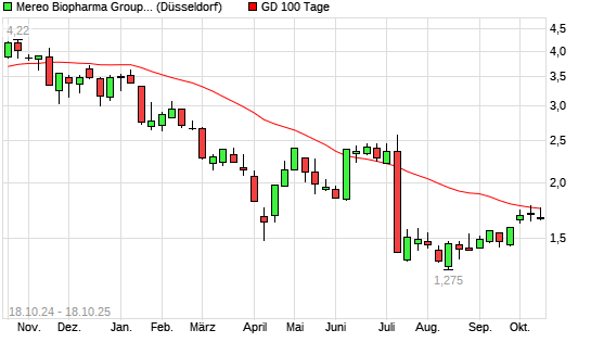 Mit dem Rücksetzer auf 1,66 EUR hat die Mereo Biopharma-Aktie am 17.10.2025 die 100-Tage-Linie nach unten gekreuzt.