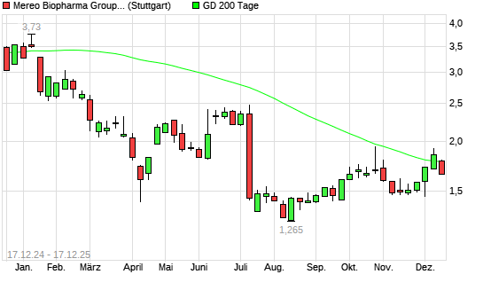 Mit dem Rücksetzer auf 1,77 EUR hat die Mereo Biopharma-Aktie am 16.12.2025 die 200-Tage-Linie nach unten gekreuzt.